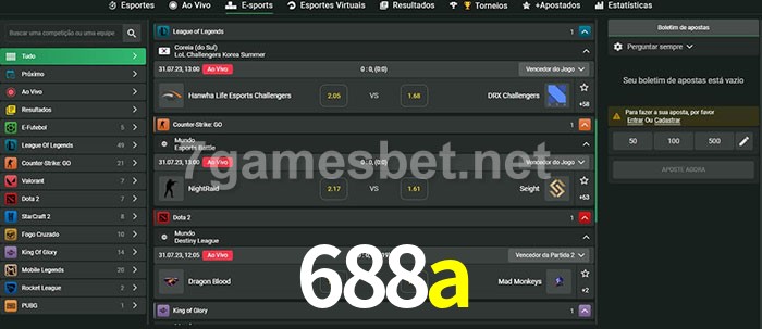 A aposta 688a oferece aos jogadores a experiência mais conveniente de apostas em eSports!